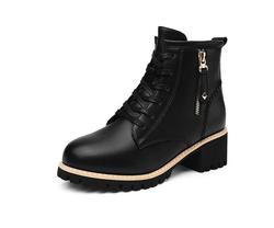 Осенне-зимние женские модные мотоциклетные ботинки на толстой подошве с хлопковой подкладкой и верхом из искусственной кожи